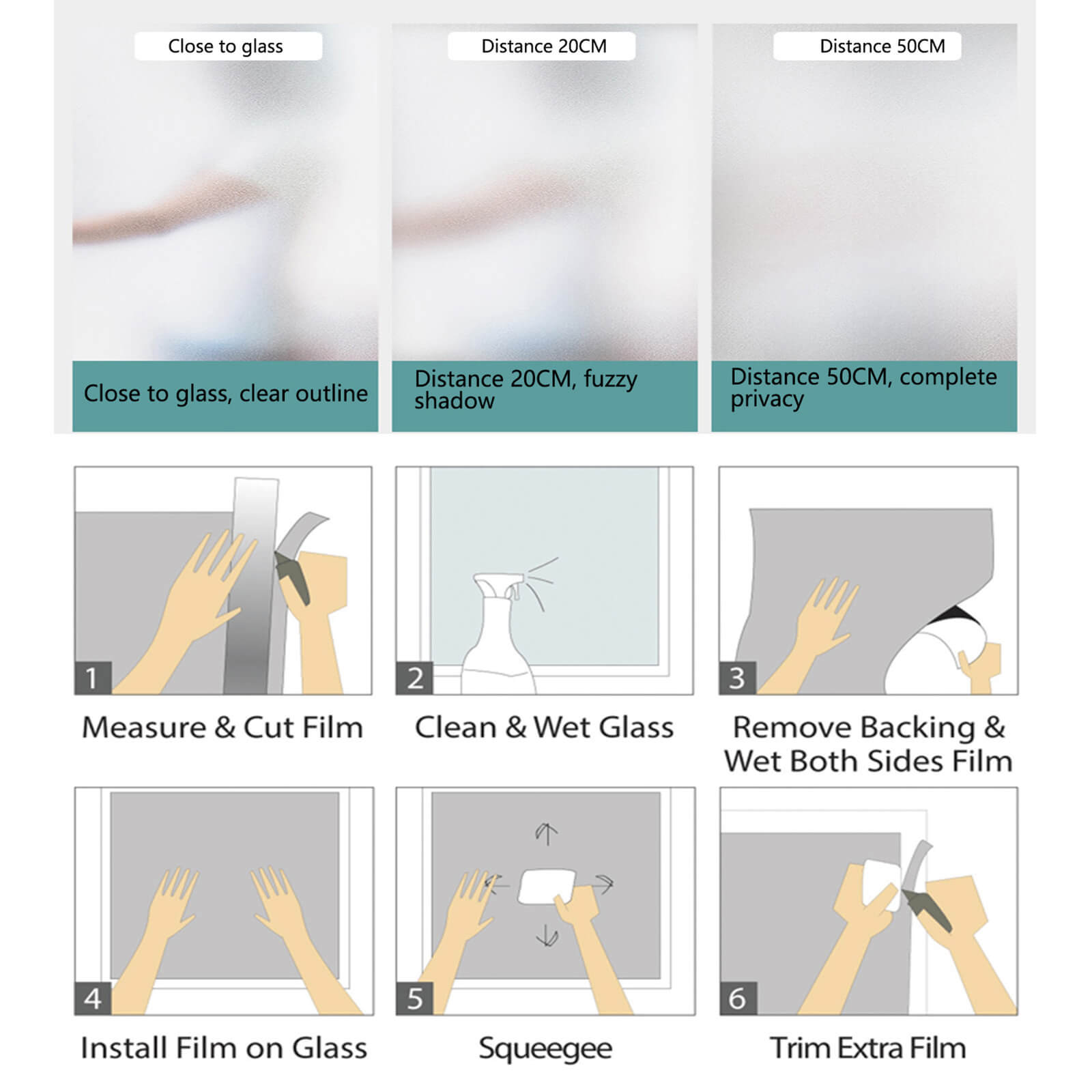 Einfach zu reparieren, zu zerlegen und wiederzuverwenden: Die Milchglasoptik kann durch einfache Bedienung erreicht werden. Kein Verblassen, keine Blasen, wiederverwendbar und lange Nutzungsdauer.