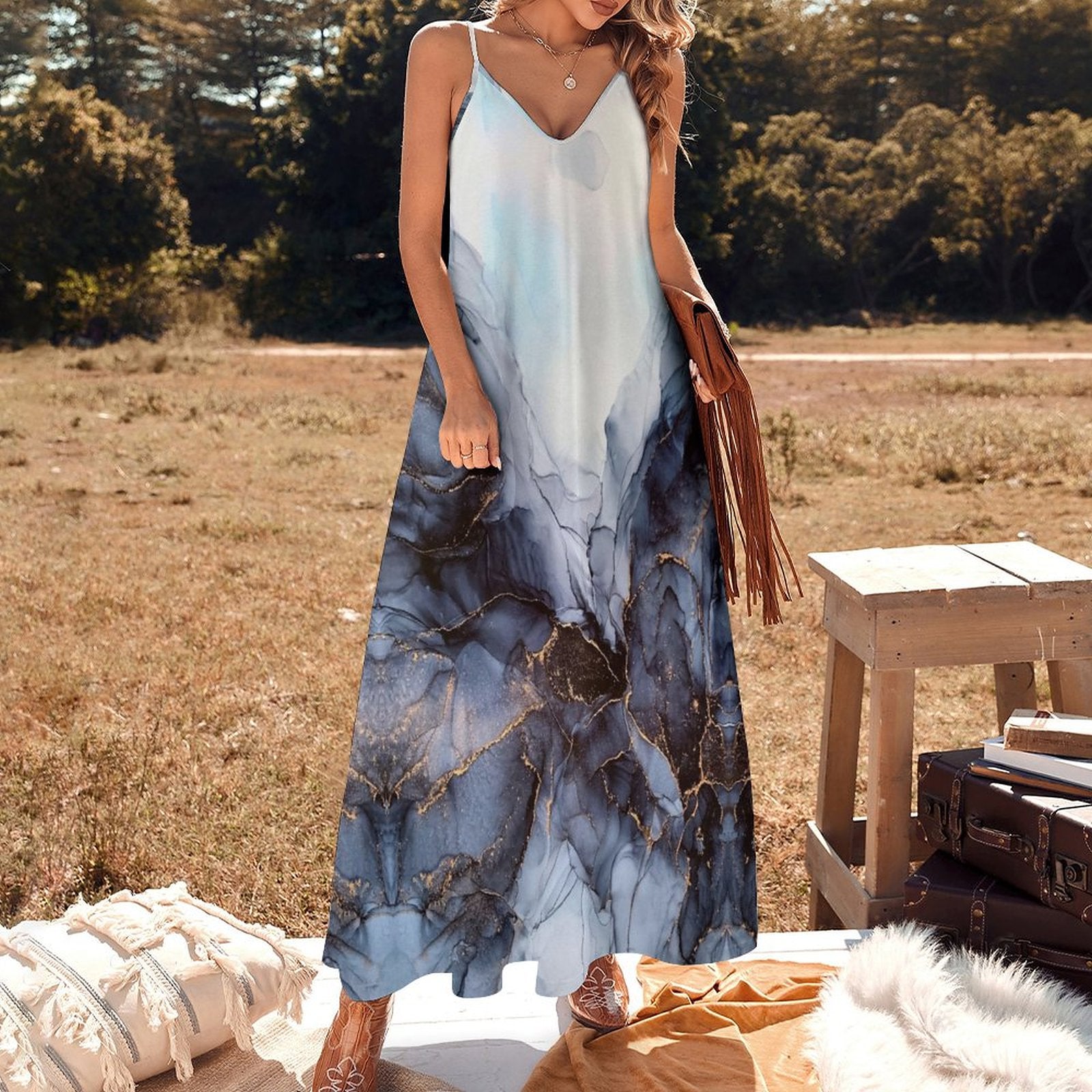 Du hast es vielleicht gleich erkannt: Das Maxikleid Multi-Image-Design Allover-Druck Damen / Frauen Kleid lang mit verstellbarem Träger BDQ selbst gestalten und bedrucken ist ein tolles Must-have für zukünftige feierliche Anlässe. Das lange Kleid sorgt dank des V-Ausschnitts, der deinen Oberkörper optisch streckt und deinen Hals etwas länger wirken lässt, für einen maximal charmanten Auftritt. Anpassbare Spaghettiträger zum Detailreichtum dieses Styles bei. Gleiches gilt für die deiner Figur schmeichelnde Teilungsnaht in der Taille mit zusätzlichem Gummizug auf der Rückseite. Aus leichter und luftiger Stoff gefertigt, sorgt das gewebte Kleid dafür, dass du dich wohl fühlst und beim Tanzen nicht so schnell ins Schwitzen kommst.