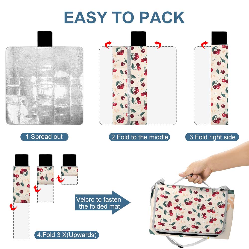 Flanellgewebe + Schwamm + Wasserdichte Rückseite aus Aluminiumfolie: Nicht nur bequem, hautfreundlich, weich, atmungsaktiv, verblasst nicht, sondern auch gegen Mehltau, antibakteriell und antistatisch. Verdickter Schwamm mit hoher Dichte: Wendet die Technologie der thermischen Verbindung an und ist komfortabler. Die Strandmatte kann bis zu 148 x 148 cm geöffnet werden und eignet sich für Familien- oder Partyferien mit 3-5 Personen im Sitzen. Es hat Ihre Strandzeit besonders angenehm gemacht. Die Stranddecke kann an einen Rucksack gehängt und in einen Picknickkorb oder Kinderwagen gelegt werden, ohne zu viel Platz in Anspruch zu nehmen. Das PEVA-Material auf der Unterseite isoliert Sie perfekt vor Hitze und Feuchtigkeit auf dem Boden, bietet Ihnen ein komfortableres Picknick-Party-Erlebnis und verwöhnt Sie mit glücklichen Momenten. Schütteln Sie einfach die Picknickdecke, um den Sand auf einmal loszuwerden und ein sandfreies Erlebnis zu haben. Die vielseitige Stranddecke im Freien ist die perfekte Wahl für Ihren Tag im Freien. Ideal für Picknicks, Familienausflüge, Wandern, Sportveranstaltungen, Open-Air-Festivals, Camping, Wandern, Strandurlaub, Angeln oder andere Outdoor-Aktivitäten. Auch als Bodenmatte, Kinderspielmatte, Haustierplatz und vieles mehr geeignet.