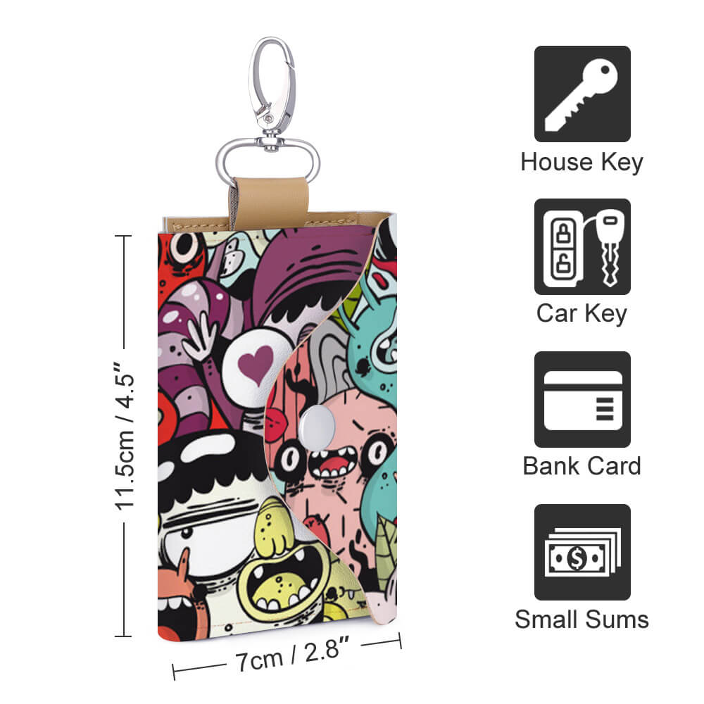 Dieser Schlüsseltasche bietet ausreichend Raum für lange und große Schlüssel. Ob Autoschlüssel, Hausschlüssel oder Bedienschlüssel, jeder Schlüssel findet in diesem praktischen Schlüsseletui Platz. Die Schlüsseltasche ist nicht nur Zierde und sieht toll aus, sondern hilft optimal auch in jeder Alltagssituation weiter. Mit disem Schlüsselmäppchen werden Schlüssel sicher aufbewahrt und Karten oder Kleingeld immer geordnet aufgeräumt und können sich das lange Suchen ersparen. Klein und unscheinbar kann dieses Accossoires Großes bewegen!