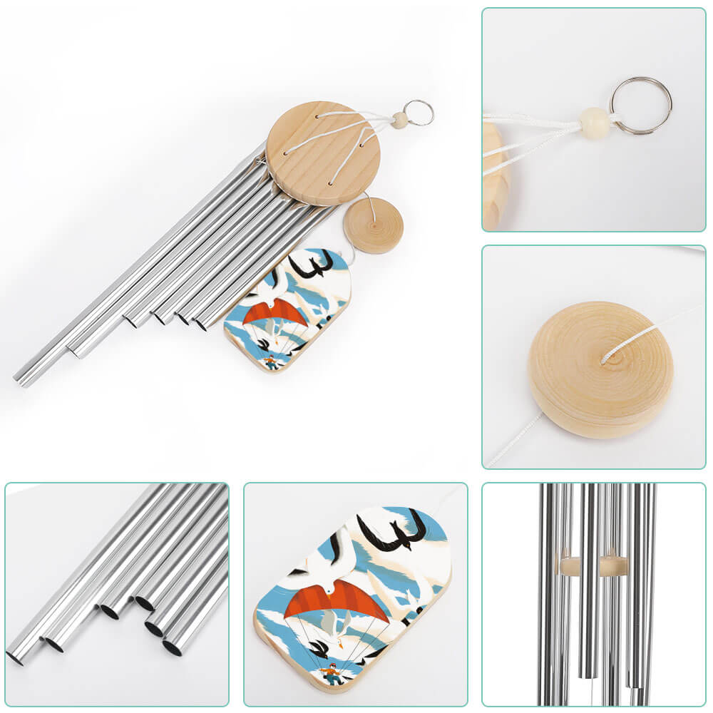 Hochwertige Materialien: gut strukturiert, 6 Metallrohre aus Aluminiumlegierung, befestigt durch Nylonseil, langlebig. Das Holzteil besteht aus hochwertigem Holz mit hoher Verschleißfestigkeit.