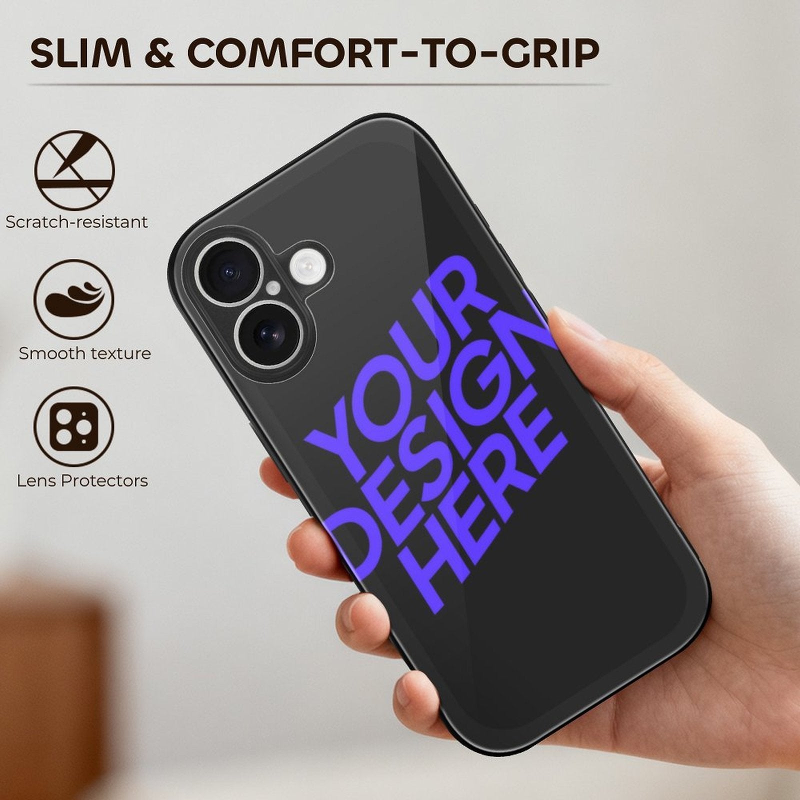 Verleihen Sie Ihrem Telefon mit dem gestaltenselbst.com Custom Case eine individuelle und persönliche Note! Diese spezielle Hülle ermöglicht es Ihnen, Ihr Telefon durch das Hinzufügen eines gewünschten Motives vollständig zu personalisiere. Egal ob Urlaubsfoto, ein tolles Muster, Deine Familie, Dein Freund / Freundin / Dein Haustie.