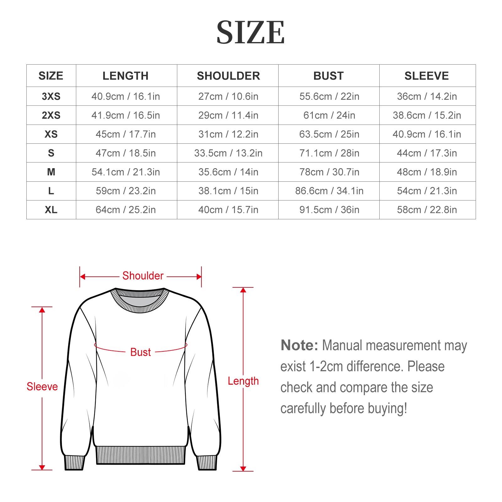 XL 64cm/25.2in 40cm/15.7in 91.5cm/36in 58cm/22.8in
