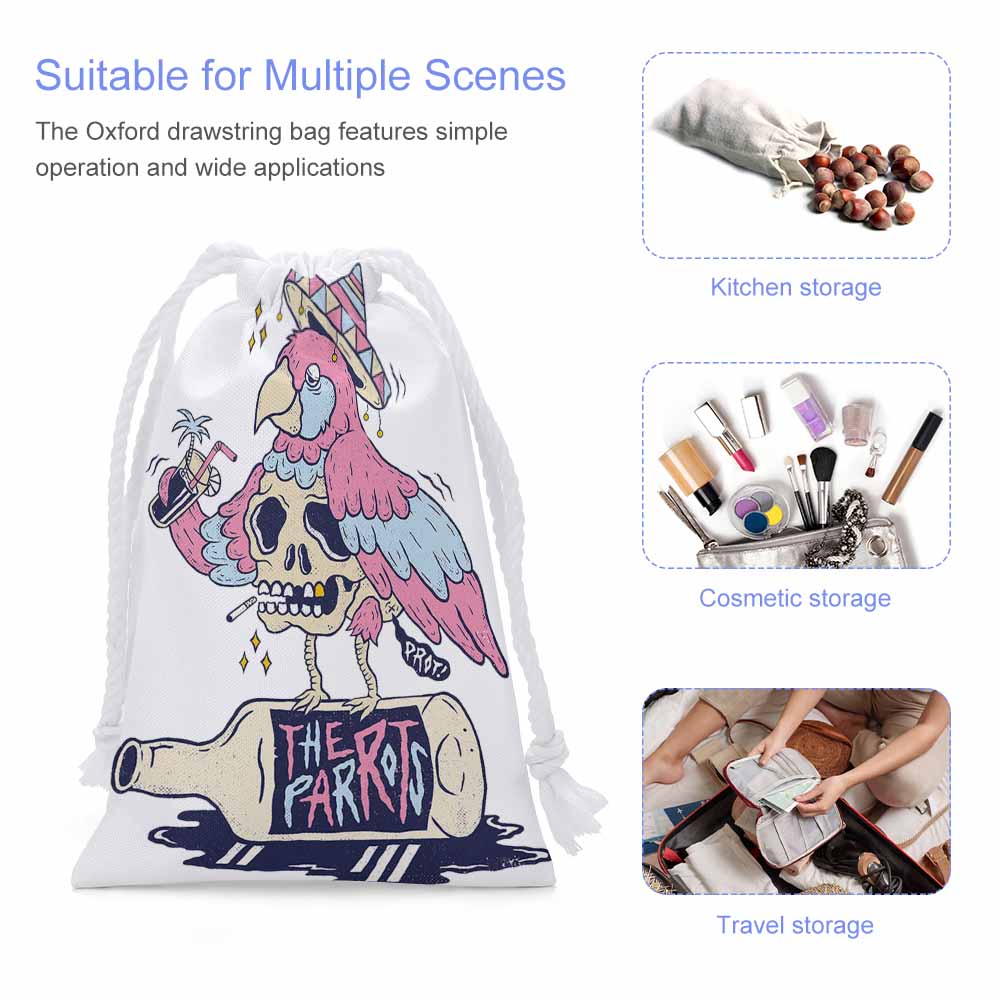 Anwendungsszenarien: Mehrzweck-Oxford-Seilsack für verschiedene Zwecke: für wiederverwendbare Produktionsbeutel, Getreide, Nüssen, trockenen Snacks, Lunchbedarf, Spielzeug, Kosmetik, Schuhe, Reise.