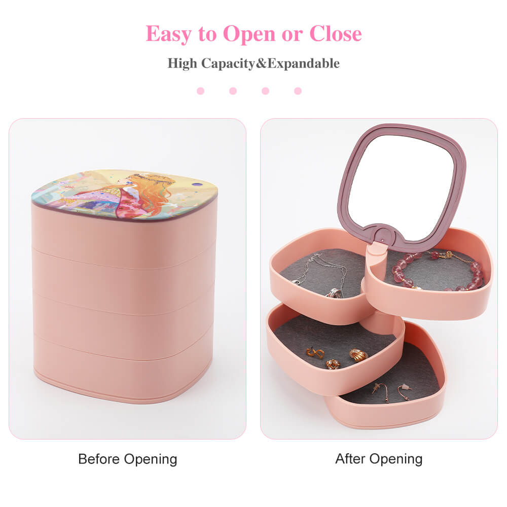Flexibler Einsatz: Es kann nach Belieben um 360 Grad gedreht werden und Ihr Schmuck lässt sich leicht ein- oder herausnehmen. Bei Nichtgebrauch können Sie Ihre Schmuckkästchen in einen Zylinder verwandeln, um Platz zu sparen und Staub zu vermeiden.