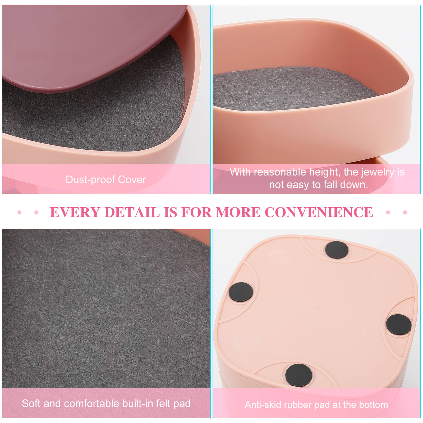 Mehrschichtiges Design: Das einzigartige 4-Schicht-Design nutzt den Platz angemessen, um verschiedene Gegenstände wie Schmuck, Uhren, Make-up-Tools usw. Klein und exquisit, leicht zu tragen. Sie werden alles schnell finden.