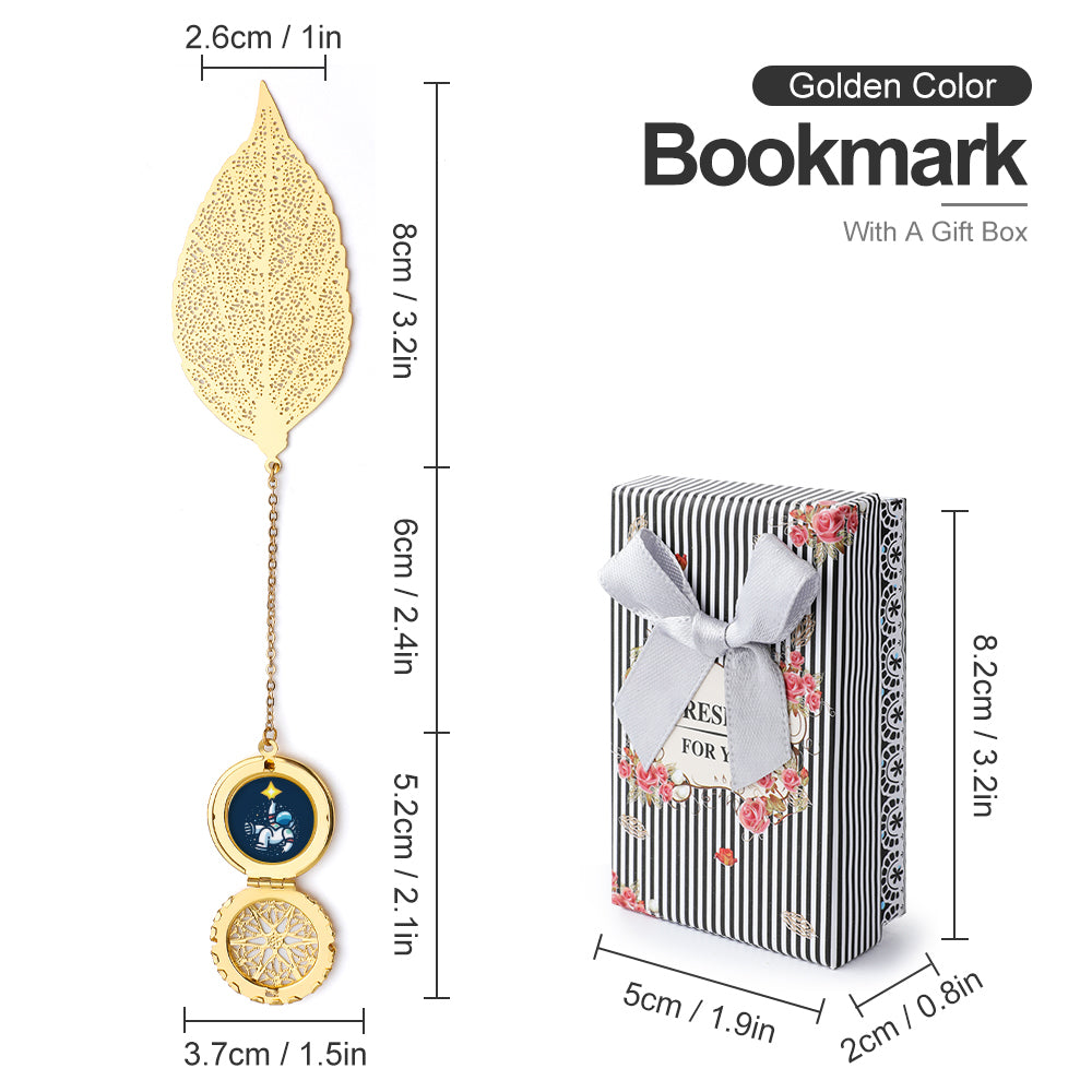 Das Blattmetall ist vergoldet, nicht leicht zu rosten, zart und transparent, langlebig in der Farbe. Exquisite Lesezeichen, leicht zu finden durch Teilen der Buchseiten. Benutzerdefinierte DIY-Muster, kleine und einzigartige Anhänger, hohl Clamshell-Design, Retro-Mode und Geschenkbox-Verpackung unterstreichen die Qualität.