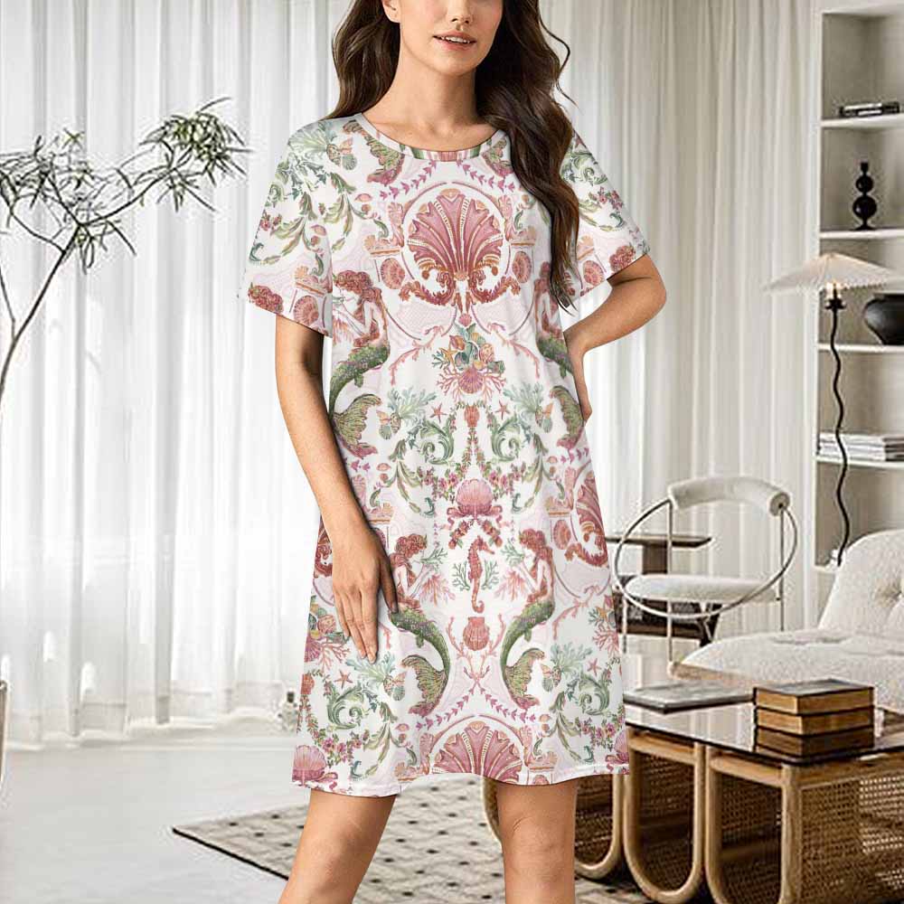 Dieses Nachthemd hat einen klassischen Rundhalsausschnitt und kurze Ärmel. Sie können Ihr Lieblingsmuster entwerfen, um Ihrem Pyjama einen anderen Stil zu verleihen. Es ist ein perfektes Geschenk für Sie selbst, Ihre Frau, Mutter, Tochter oder Freunde.