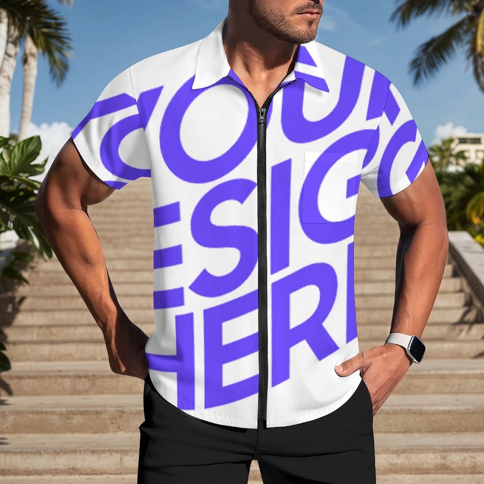 Dieses kurzärmelige Herrenhemd mit Reißverschluss ist aus einem glatten, leicht dehnbaren Material gefertigt und bietet so hohen Tragekomfort und optimale Bewegungsfreiheit. Das Hemd besteht aus 95 % Polyester und 5 % Elasthan, hat eine schmale Passform und ist in allen Größen, inklusive 4XL und 5XL, erhältlich. Auch wenn du die Hemden mehrfach waschen solltest, die Farbe verliert dabei nie an Leuchtkraft und du kannst dich immer wieder an dem schönen Motiv erfreuen.
