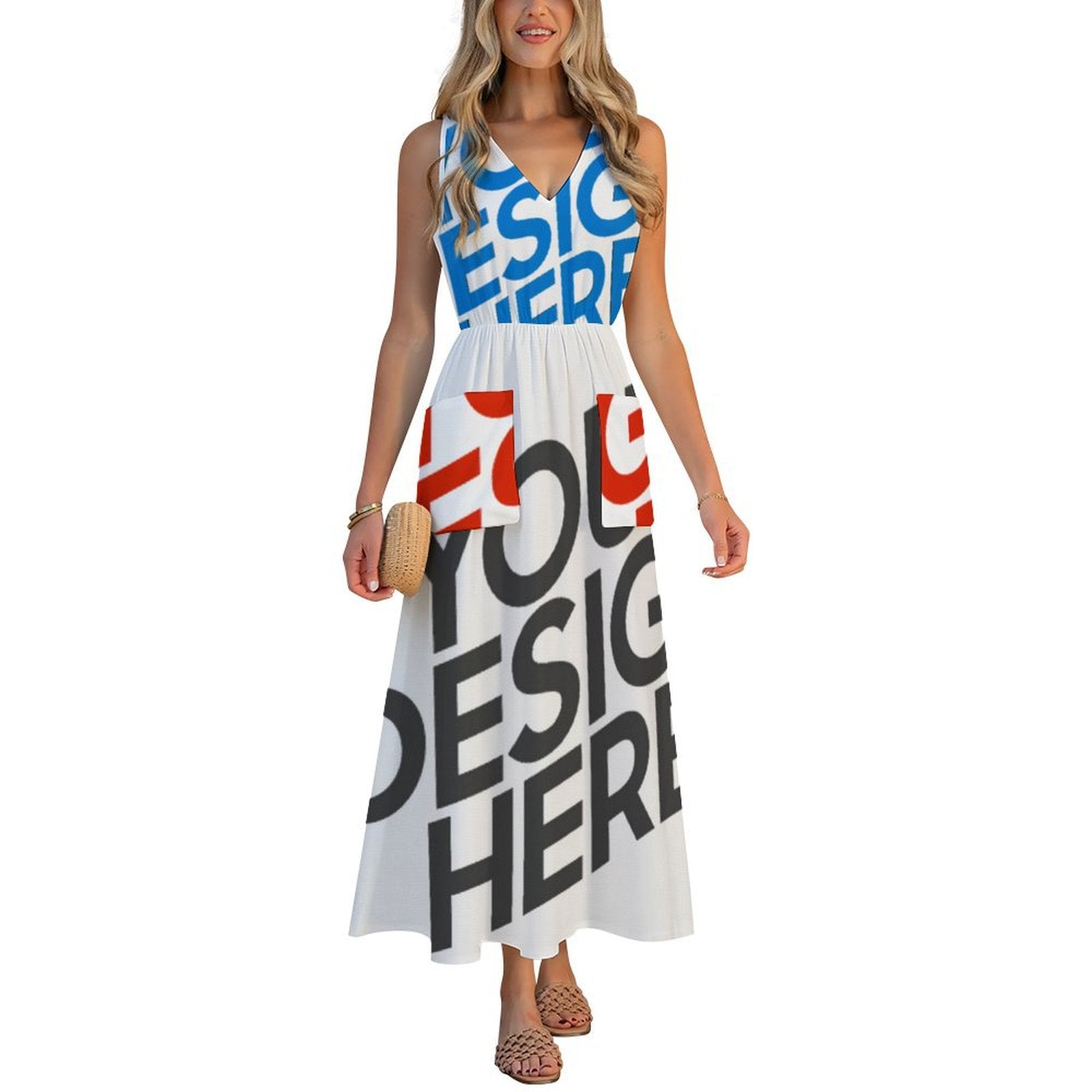 Multi-Image-Design Damen / Frauen Ärmelloses Kleid mit V-Ausschnitt C22Q mit Fotos Muster Text Logo selbst gestalten und bedrucken