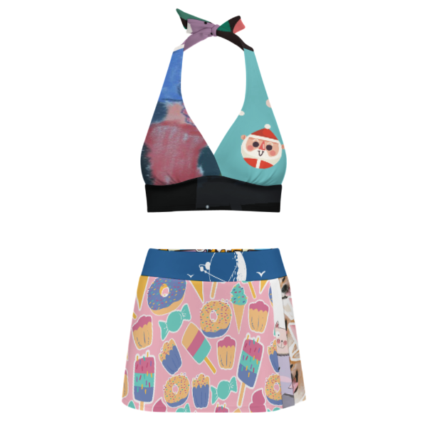 Herausnehmbare, weiche Cup-Einlagen und verstellbare Schulterträger sorgen für individuellen Tragekomfort. Passen Sie die Passform Ihren Bedürfnissen an – für optimalen Halt und ein sicheres Gefühl beim Schwimmen. Dieses Bikini-Set mit kurzem Rock ist der ideale Begleiter für alle Urlaubsaktivitäten. Ob Wassersport, Entspannung am Pool oder Strandspaziergänge – es strahlt Eleganz aus.