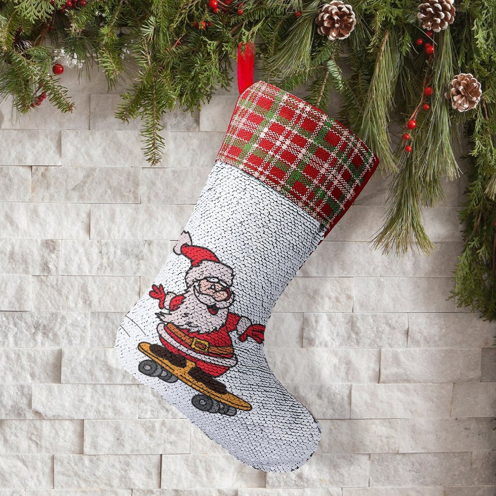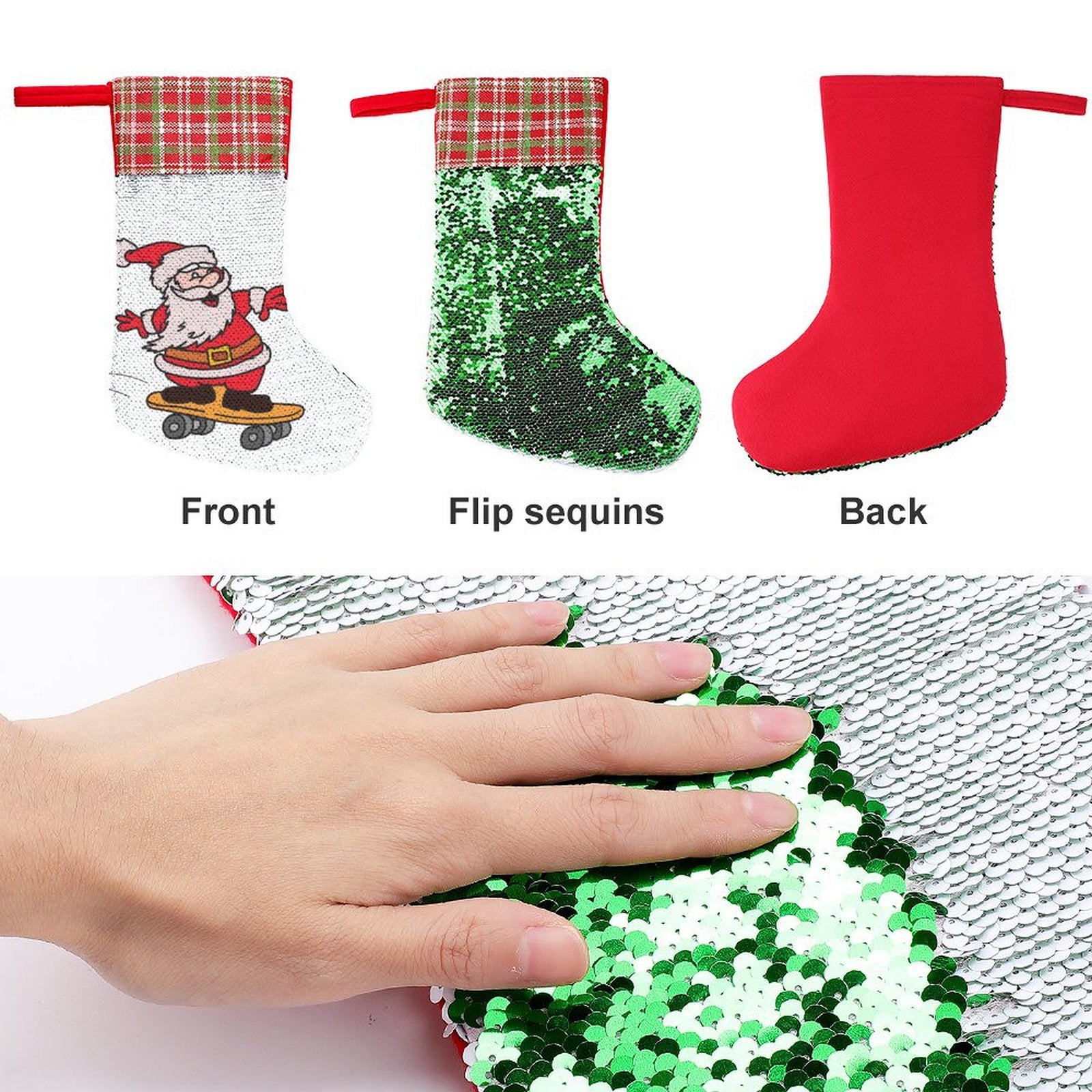 Personalisierbarer Weihnachtssocke mit Pailletten | Nikolausstrumpf mit Foto