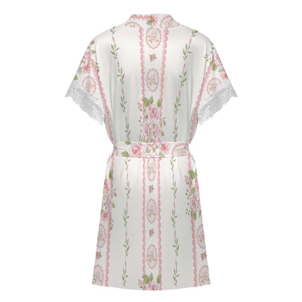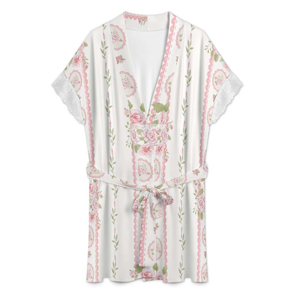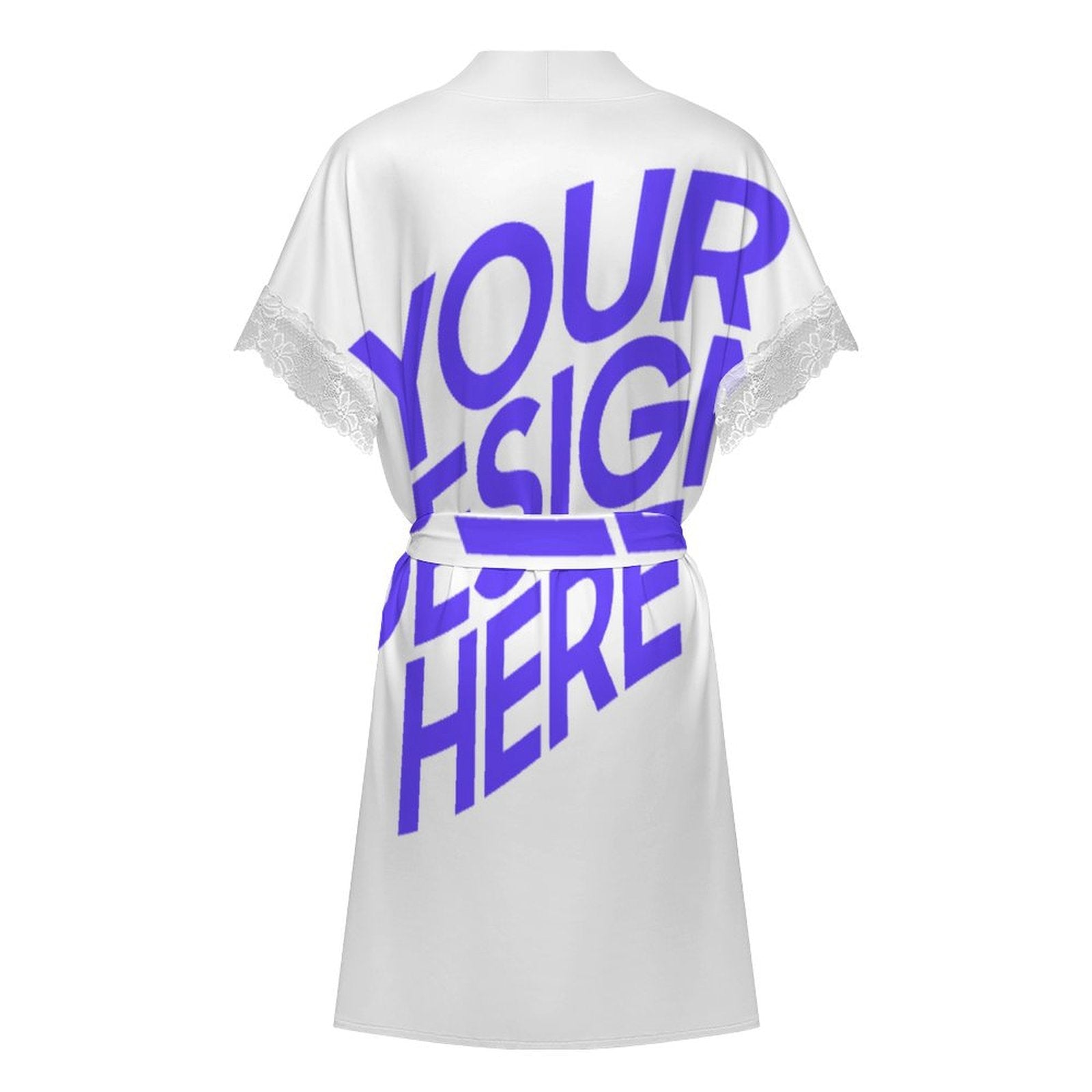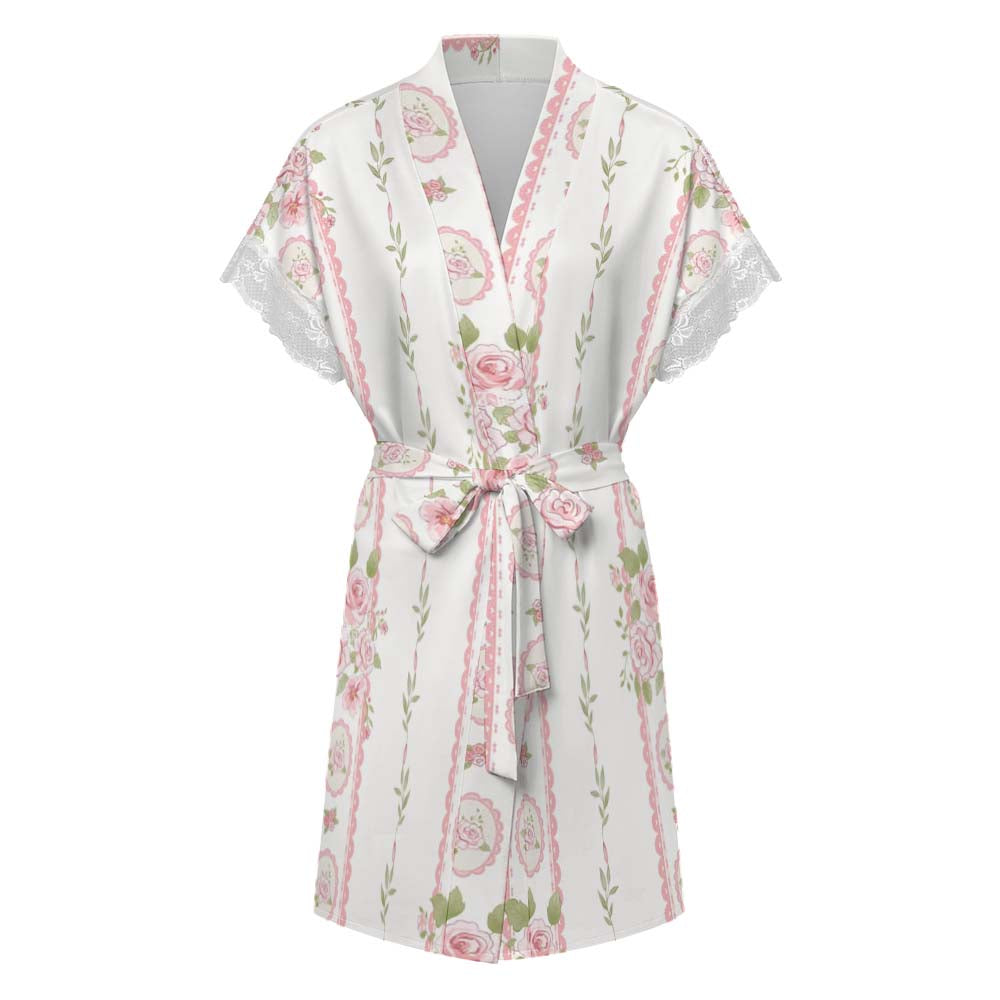Einzelbild-Design Damen/Frauen Kurzärmeliger Bademantel Pyjama mit Gürtel und Spitzenbesatz SDS2517 mit Foto Design Motiv Text selbst gestalten und bedrucken
