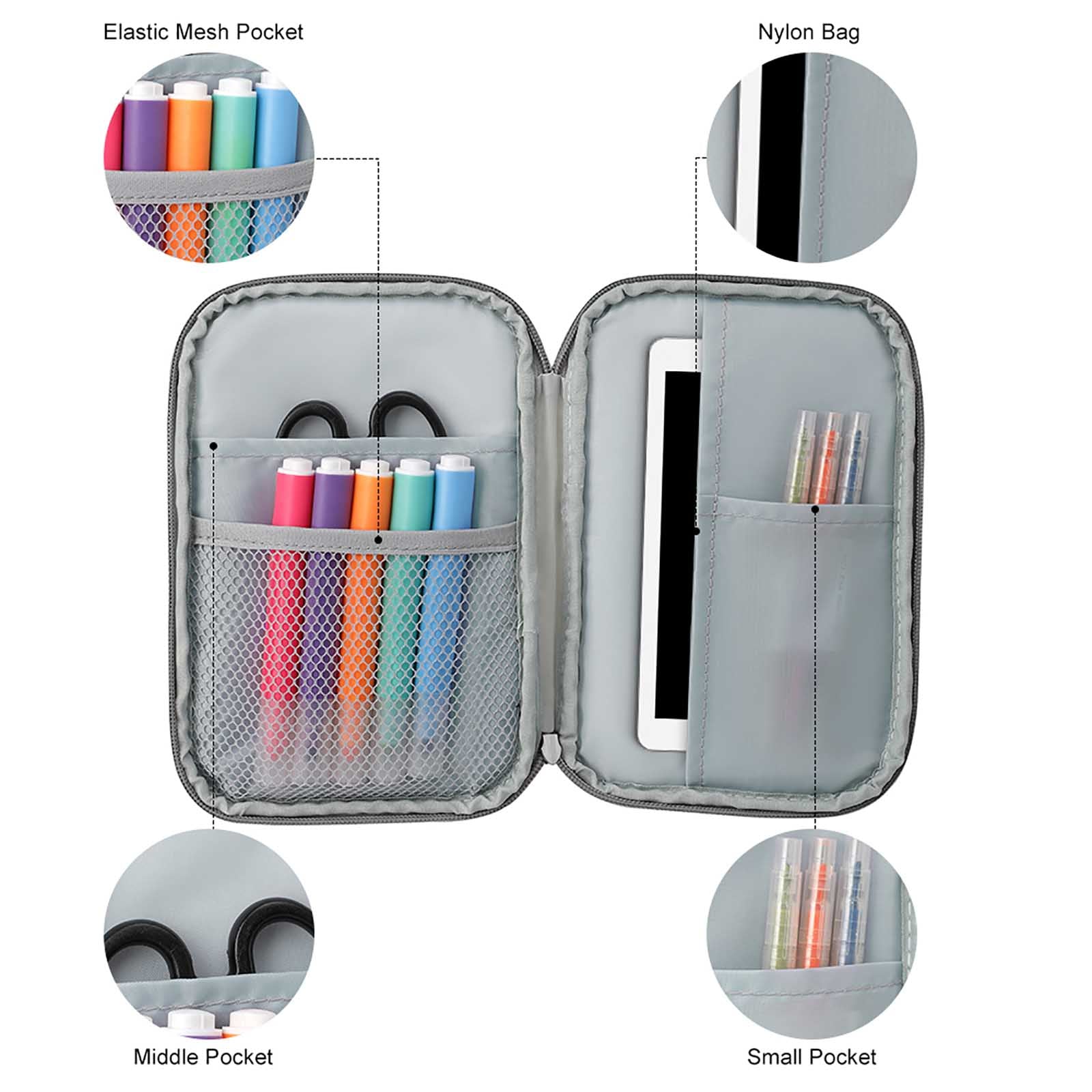 Unser Federmäppchen besteht aus hochwertigem PU-Material, das robust und langlebig, weich und angenehm anzufassen, abriebfest, fleckenabweisend und leicht zu reinigen ist. Dank des Reißverschlusses lässt es sich einfach öffnen und schließen und bietet bequemen Zugriff auf Ihre Utensilien. Die Innenfächer bieten Platz für Stifte, Karten, Bankkarten, Haftnotizen und andere Kleinigkeiten.