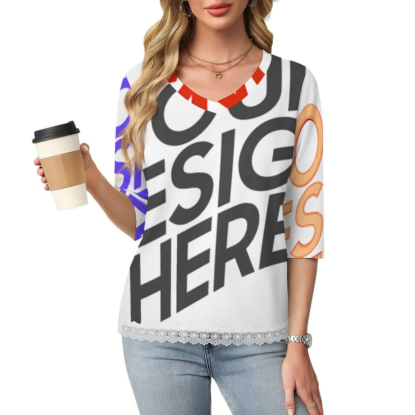 Das klassische T-Shirt mit V-Ausschnitt besteht aus 95 % Polyester + 5 % Elasthan und ist in vielen Farben und Größen erhältlich. Durch die glatte, weiche Struktur bietet es dir hervorragende Druckergebnisse und ist gleichzeitig pflegeleicht sowie angenehm auf der Haut zu tragen. Spitzenbesatz – ein beliebtes und trendiges Design, das tadellosen Geschmack beweist, der voll im Trend liegt. Damit ist es nicht nur ein Basic, sondern ein echtes Style-Statement.