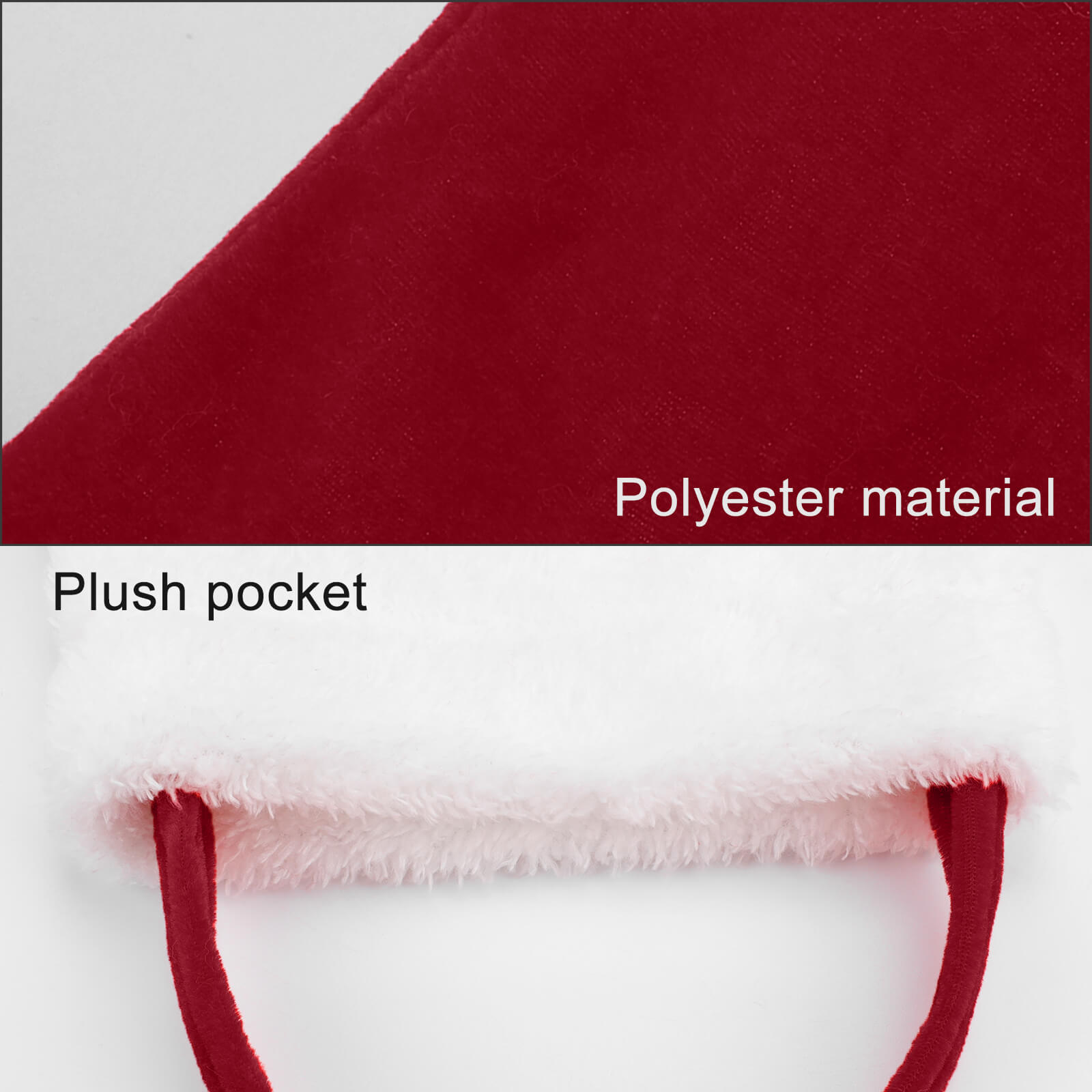 Der Taschenkörper ist rot, der Taschenmund ist aus weißem, kurzem Plüsch, der Stoff ist weich und bequem und die Textur ist leicht, wodurch die Farbe hell und dauerhaft bleibt. Das gedruckte Muster kann eine langfristige Verwendung gewährleisten. An der Öffnung der Weihnachtstasche befindet sich ein Schlüsselband, mit dem Sie überall dort hängen können, wo Sie es dekorieren möchten. Es kann auch als Geschenktüte mit Süßigkeiten, Karten, Spielzeug, kleinen Geschenken usw. verwendet werden. Es hat ein gutes Aussehen, fügt eine festliche warme Atmosphäre hinzu und verschönert das Leben.