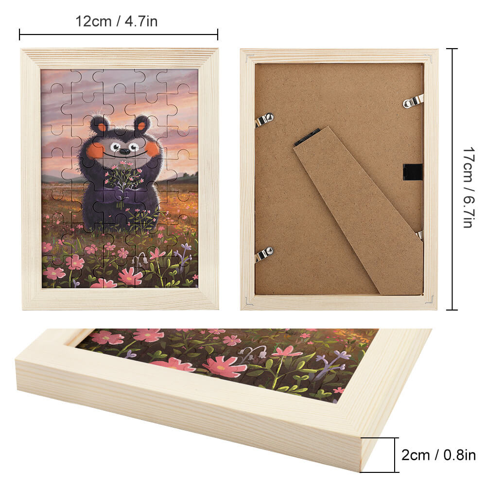 Dieser Puzzle Bilderrahmen Fotorahmen mit Photo in vertikale Version ist aus hochwertigem Pappelholz gefertigt, mit fester Farbe, wunderschöner Bildqualität, grün und umweltfreundlich, kein eigenartiger Geruch, sicher und nicht reizend. Der exquisite Fotorahmen kann das Puzzle vor Staub oder Kratzern schützen, Ihre Puzzlefotos klar sehen und Ihre Fotos und Erinnerungen speichern. Wenn Sie Ihre schönsten Momente im Leben festhalten, fällt es Ihnen und Ihren Kindern gar nicht schwer, beim Anblick von Bildern, anhand von Tagebucheinträgen oder mithilfe von heiteren Videos in den besten Erinnerungen zu schwelgen. Vor allem Fotos helfen dabei, kleine Zeitreisen in die Vergangenheit zu unternehmen, weshalb Familienportraits gern ihren Platz auf Kommoden oder an Wänden finden. Mit dem Holzpuzzle-Bilderrahmen können Sie sich einen Teil Ihres persönlichen Erinnerungspuzzles immer vor Augen halten und ihn zusätzlich kreativ in Szene setzen.